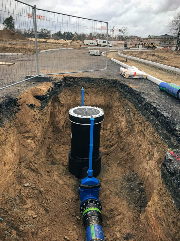 In einem ersten Bauabschnitt des Projekts Olympisches Dorf galt es u. a., die Rohwasserleitungen von den Brunnen zum Wasserwerk zu planen. Um sicherzustellen, dass diese Druckleitungen gereinigt werden können, wurden Molchzugänge eingeplant. Das für das Projekt Olympisches Dorf mit der Planung beauftragte Ingenieurbüro PST GmbH aus Werder (Havel) ist auf dem Gebiet der Projektentwicklung, Bauplanung und Baubetreuung spezialisiert. Der verantwortliche Planungsingenieur, Herr Fiedler, ist bereits früh auf die Vorteile und Möglichkeiten einer Reinert-Ritz-Lösung zur Reinigung von Rohrleitungen aufmerksam geworden und konnte den zuständigen Wasser- und Abwasserverband Havelland aus Nauen überzeugen, das wegweisende Produkt für das Projekt einzuplanen. So hat man sich, statt auf kostspielige und teure Schachtbauwerke zurückzugreifen, für die derzeit modernste und wirtschaftlichste Lösung entschieden: die Molchstation Quick-Pig aus dem Hause Reinert-Ritz.